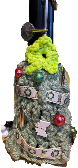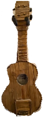 I love to paint cheap ukuleles and also have knitted one, made one out of Lego and even one out of lollipop sticks ( see above). I also make models out of old instruments. I have made an owl, and two hedgehogs out of old single and double reeds, a phoenix out of reed covers and had a model made out of old instruments on display in the d.@rt centre. I also make Toppers for instruments which I sell.
