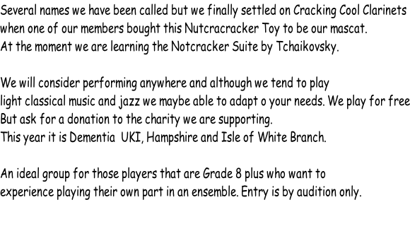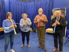 Here we are celebrating something Royal because we are playing plastic Red White and Blue Clarinets……not our main instruments I hasten to add.